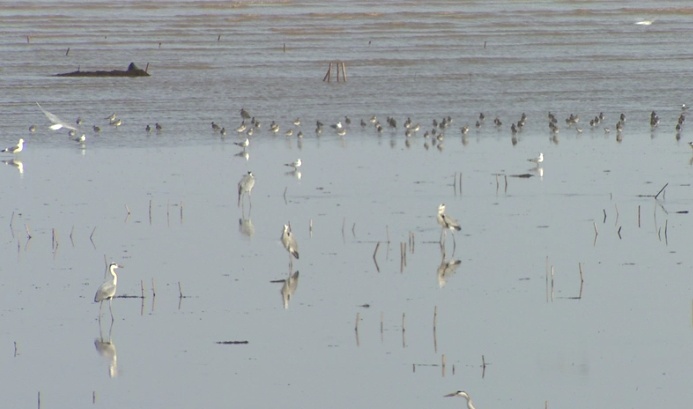 在保护区的核心区域,“明星”物种小天鹅“扎堆”休憩,它们或挺立着优雅的脖颈缓缓漂浮,或将头埋进翅膀安静沐浴冬日暖阳。对栖息环境要求极高,被称为湿地生态系统“旗舰物种”,国家一级保护野生动物、全球近危物种卷羽鹈鹕今年也被记录到18只。据介绍,今年保护区越冬水鸟数量稳定,部分物种数量还略有增长,东滩正成为越来越多鸟儿迁徙路上值得信赖的一站。