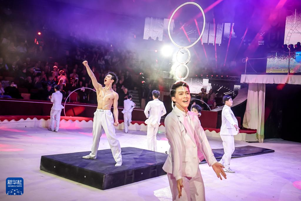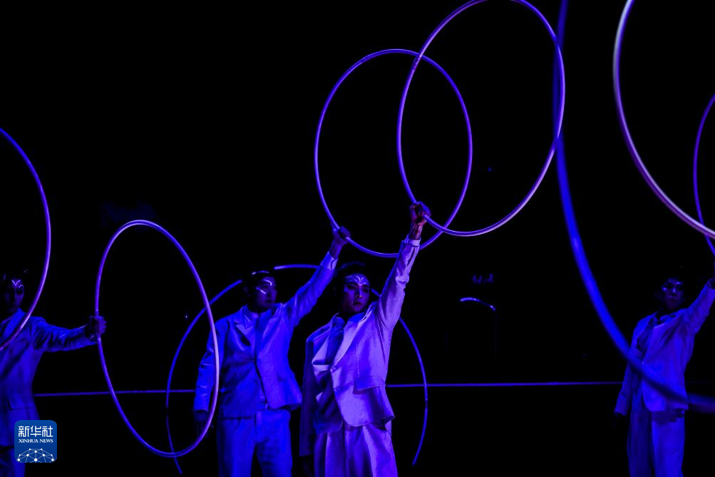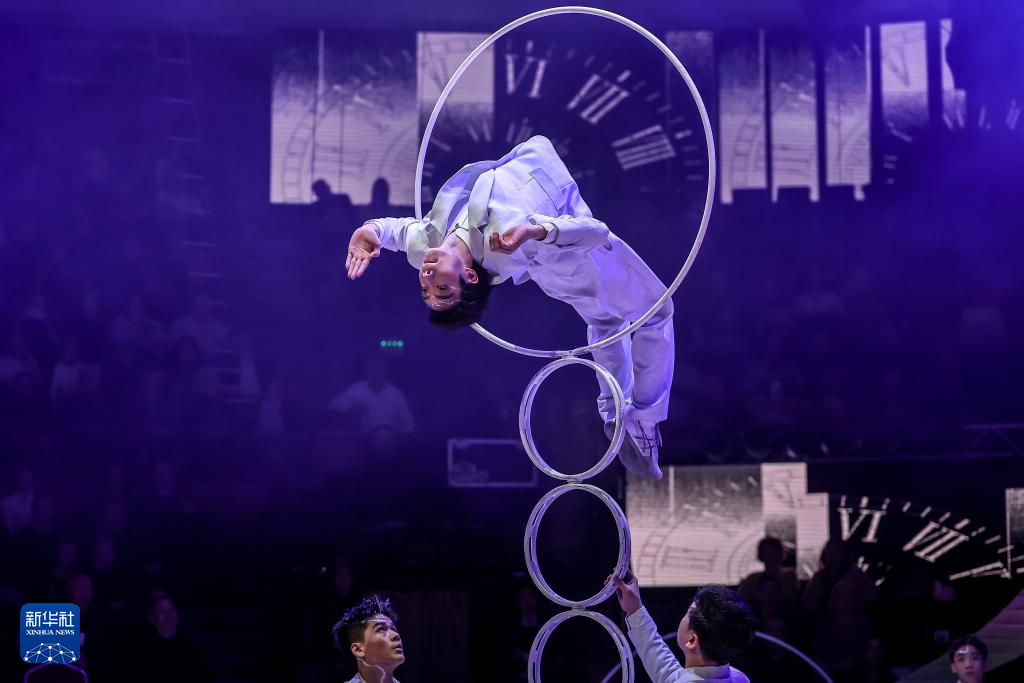 1月12日,在匈牙利首都布达佩斯,中国杂技团演员在表演《时光》。新华社发(鲍洛格·达维德摄)