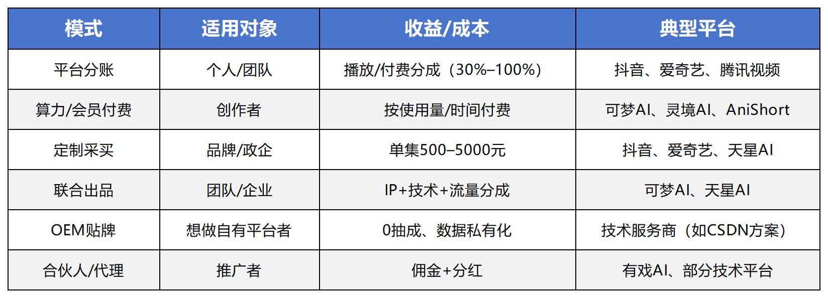 技术授权:企业/团队使用平台生成短剧,按算力/会员付费