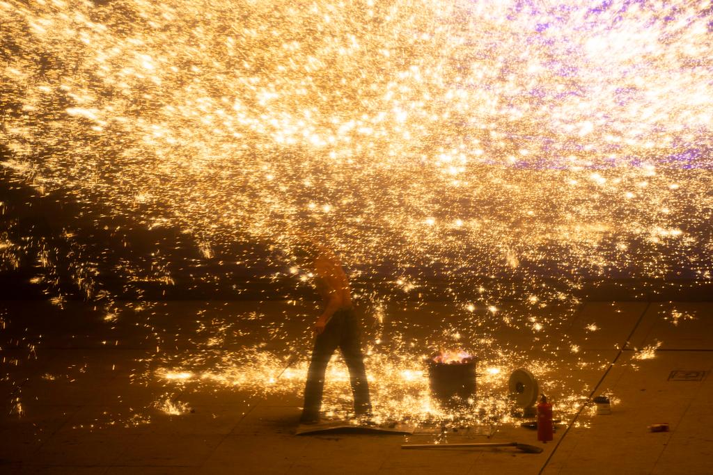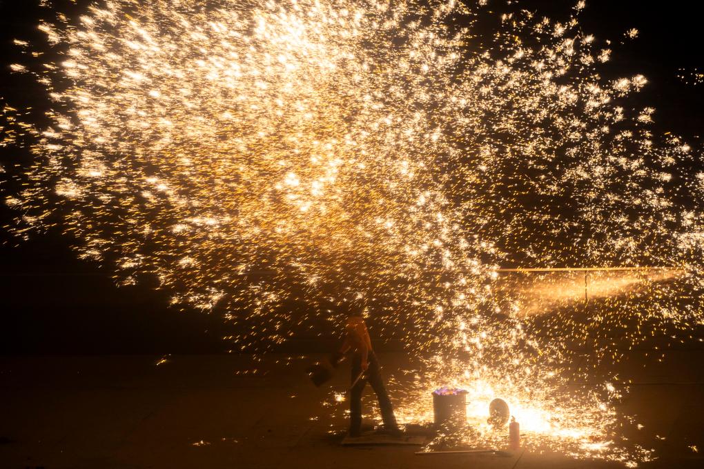 非遗“打铁花”表演点亮上海