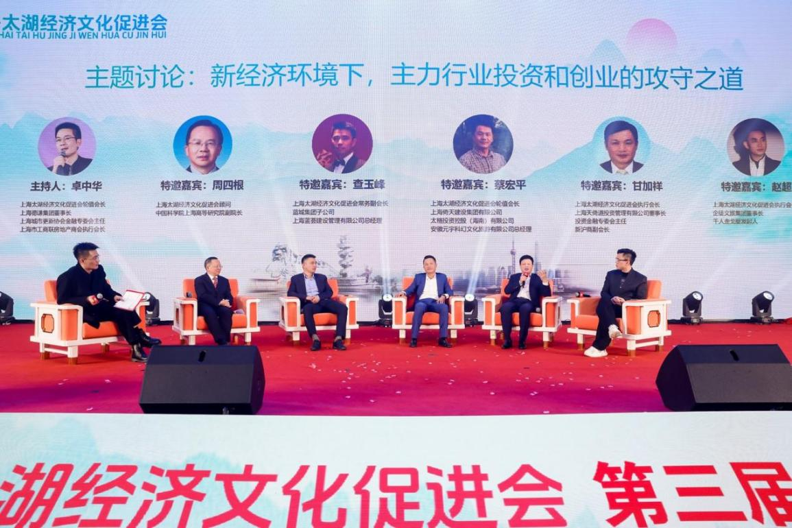 年度工作会议后,促进会轮值会长卓仲华主持主题论坛,特邀促进会顾问、中国科学院上海高等研究院副院长周四根,促进会常务副会长、 上海蓝荟建设管理有限公司总经理查玉峰,促进会执行会长、上海天倚道投资管理有限公司董事长甘加祥,促进会执行会长、上海企徒文旅集团董事长赵超等五位嘉宾,就“新经济环境下,主力行业投资和创业的攻守之道”主题展开了讨论,现场引起了很好的反响。