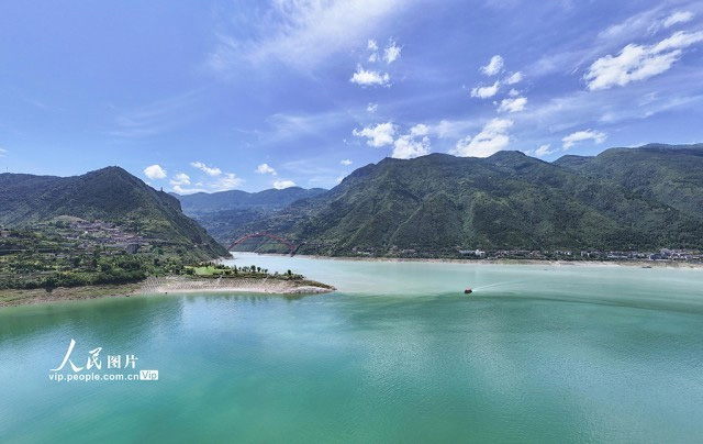 2025年6月29日,重庆市巫山县。受长江上游持续降雨影响,长江重庆段迎来今年入汛后首轮洪峰过境。在长江与大宁河交汇处,浅黄色的长江水与碧绿的大宁河水形成鲜明色差,两股水流在峡谷间交相辉映,宛如天然调色盘绘就的生态画卷。