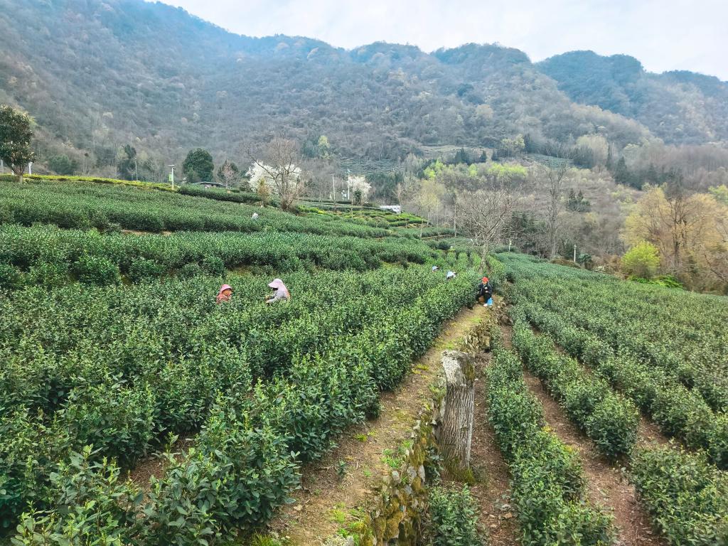 “村民基本家家种茶树,面积大的还要请人采摘,现在熟练工供不应求,包吃包住还包往返车费才请得到。”马家山村党支部书记马明说,熟练的村民每天能采1斤鲜芽,4斤鲜芽才能制作出1斤茶叶,该村有1780亩茶园,年产值在600万元。