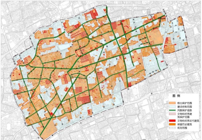 衡山路-复兴路历史文化风貌区简称衡复风貌区,总占地面积为7.66平方公里,是上海首批以立法形式认定和保护的12个历史文化风貌区之一,也是上海中心城区内规模最大、优秀历史建筑最多、历史风貌格局最完整的历史文化风貌区。