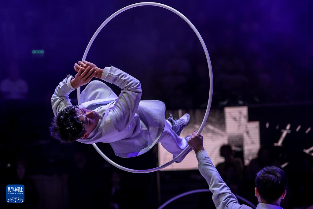 1月12日,在匈牙利首都布达佩斯,中国杂技团演员在表演《时光》。新华社发(鲍洛格·达维德摄)