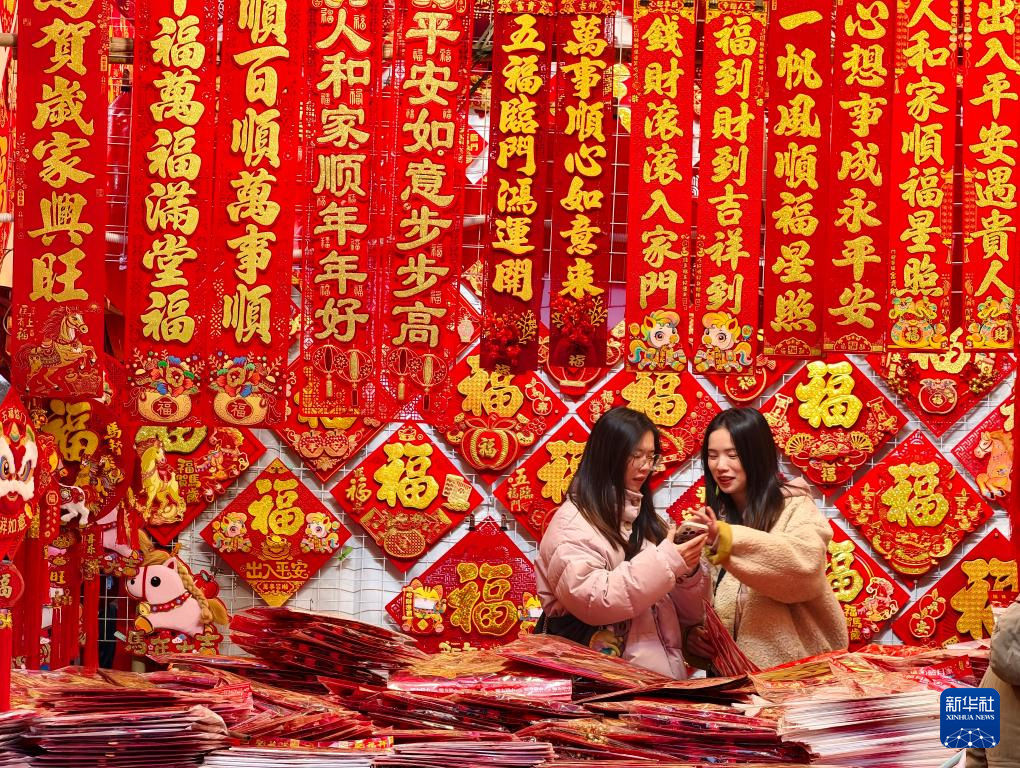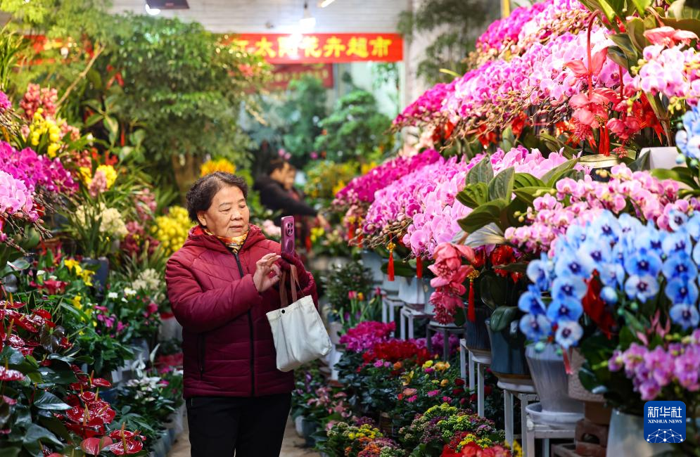 春节临近,年味渐浓。各地举办年货大集、写福字春联等活动,人们选购鲜花、中国结等饰物,迎接新春。
