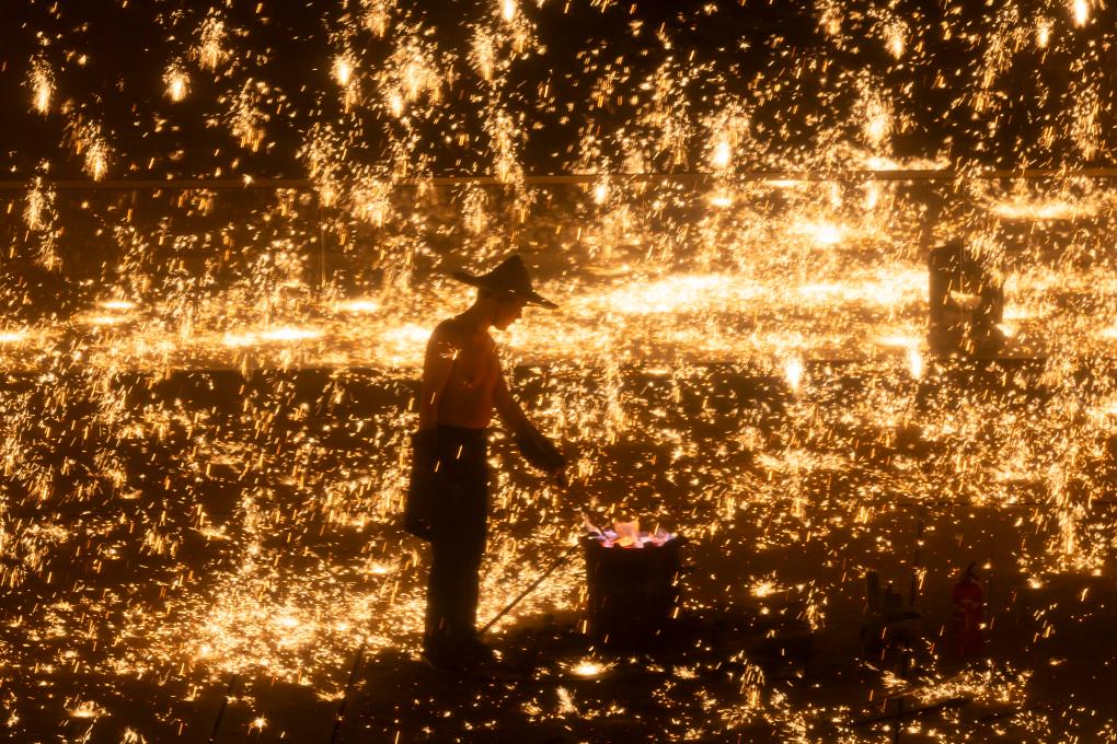 非遗“打铁花”表演点亮上海
